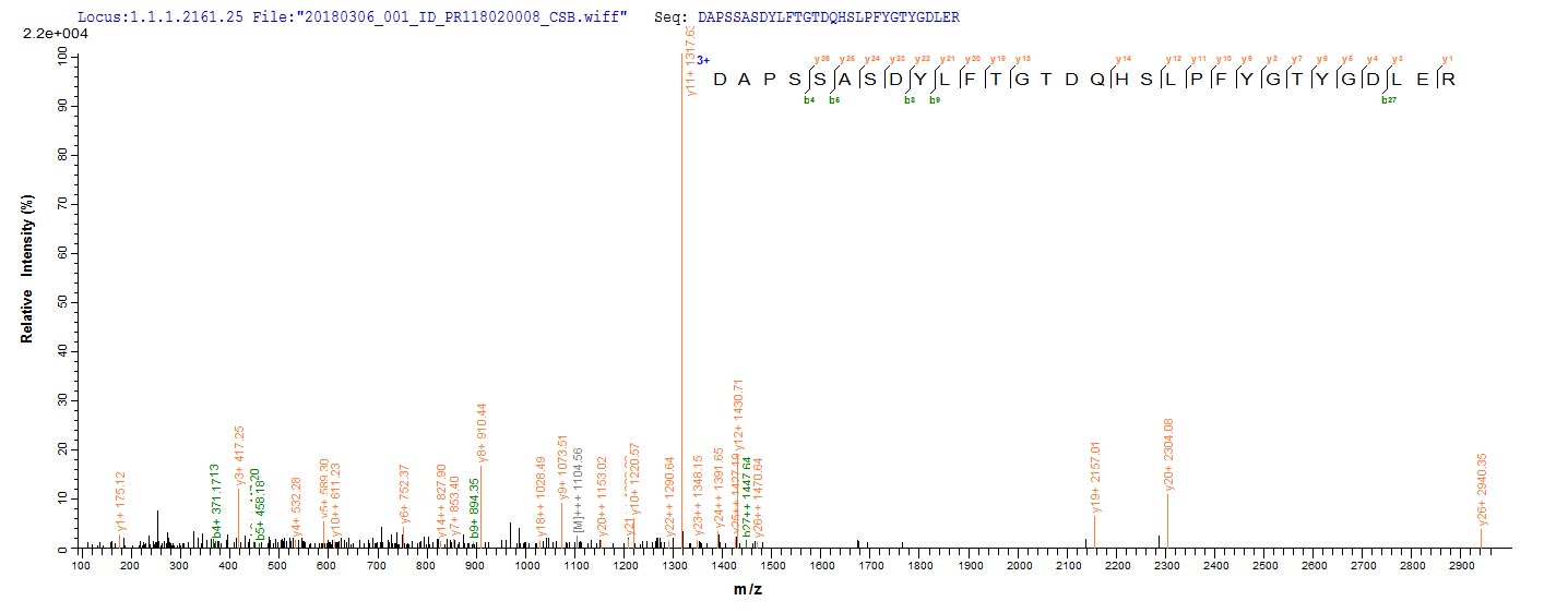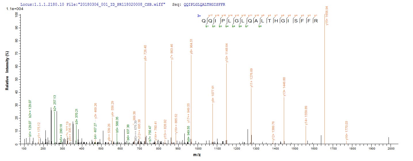 Based on the SEQUEST from database of Yeast host and target protein, the LC-MS/MS Analysis result of this product could indicate that this peptide derived from Yeast-expressed Abrus precatorius (Indian licorice) (Glycine abrus) N/A.