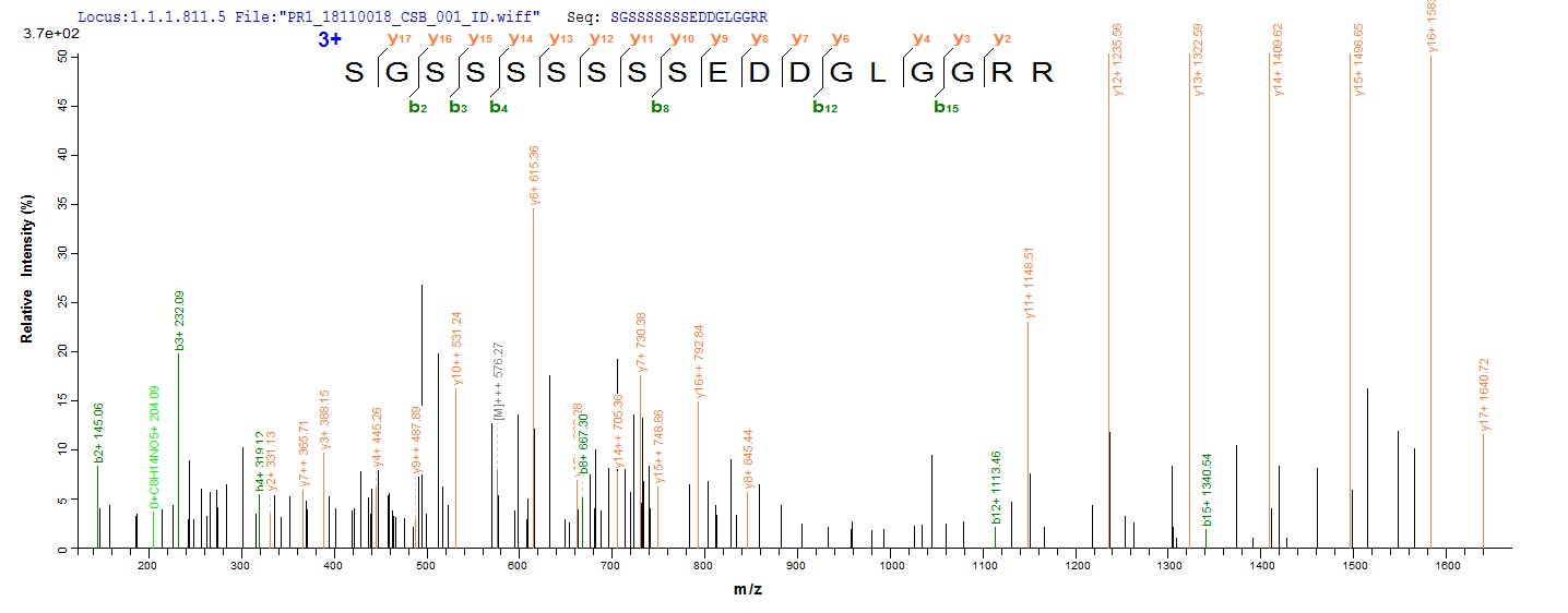 Based on the SEQUEST from database of Yeast host and target protein, the LC-MS/MS Analysis result of this product could indicate that this peptide derived from Yeast-expressed Arabidopsis thaliana (Mouse-ear cress) XERO1.