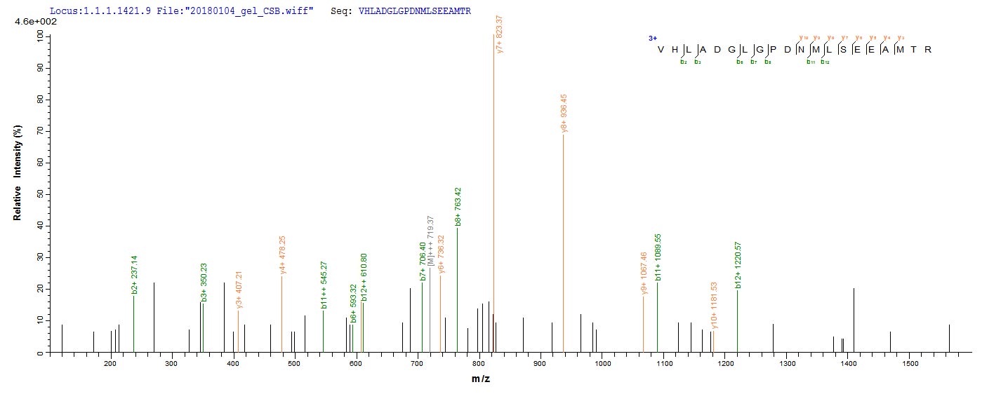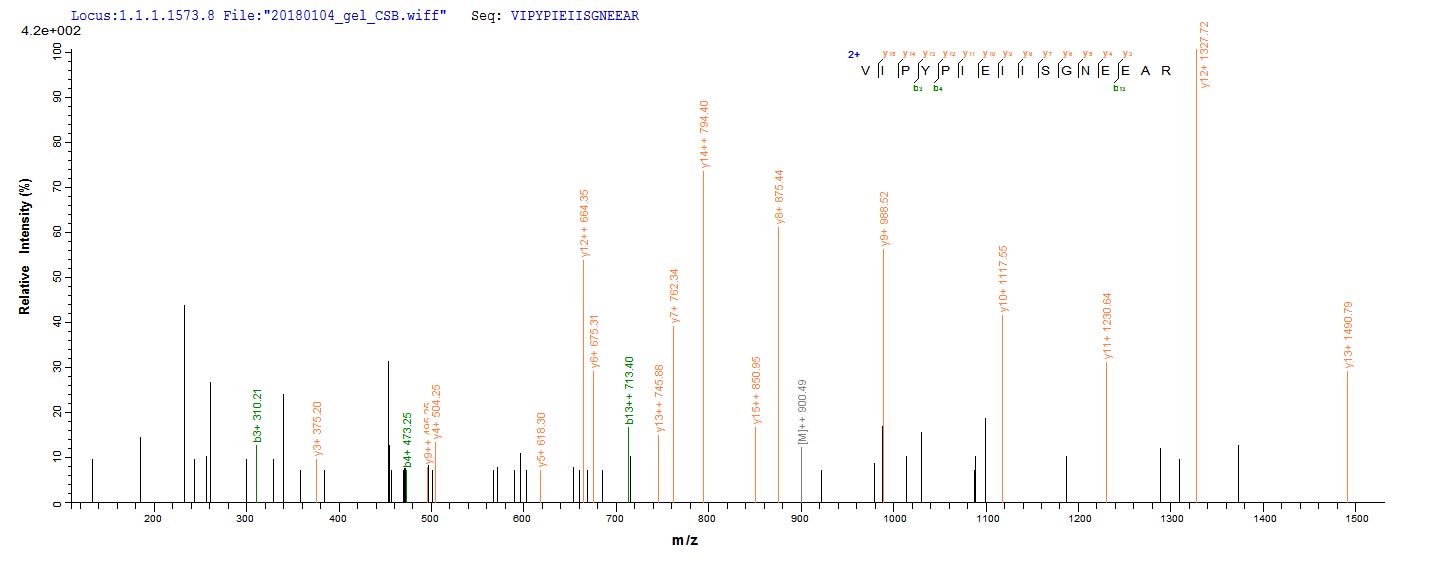 Based on the SEQUEST from database of E.coli host and target protein, the LC-MS/MS Analysis result of this product could indicate that this peptide derived from E.coli-expressed Escherichia coli O6:H1 (strain CFT073 / ATCC 700928 / UPEC) ppx.