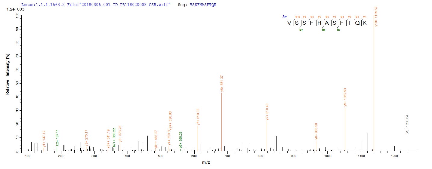 Based on the SEQUEST from database of Yeast host and target protein, the LC-MS/MS Analysis result of this product could indicate that this peptide derived from Yeast-expressed Escherichia coli O9:H4 (strain HS) lolA.