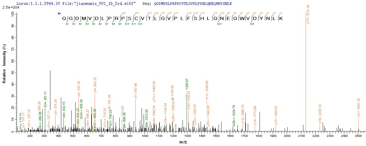 Based on the SEQUEST from database of E.coli host and target protein, the LC-MS/MS Analysis result of this product could indicate that this peptide derived from E.coli-expressed Homo sapiens (Human) CHRNA1.