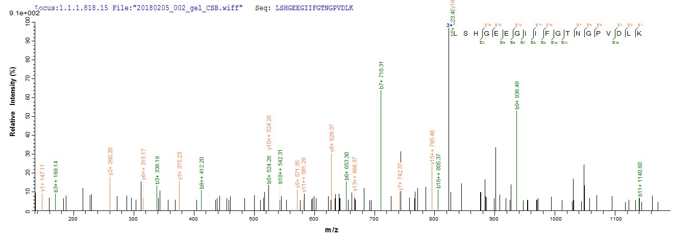 Based on the SEQUEST from database of E.coli host and target protein, the LC-MS/MS Analysis result of this product could indicate that this peptide derived from E.coli-expressed Homo sapiens (Human) CASP3.