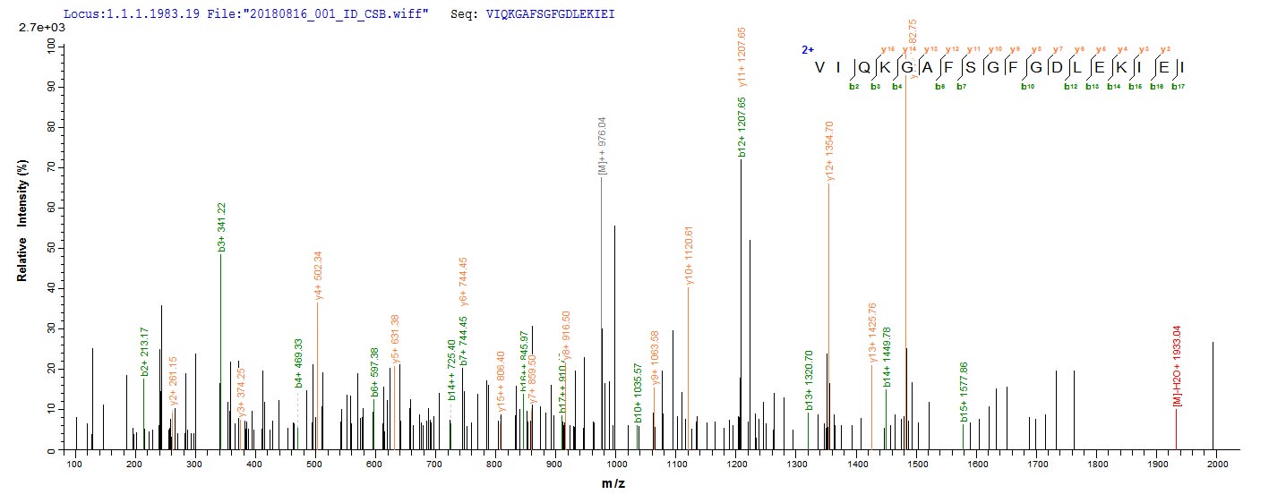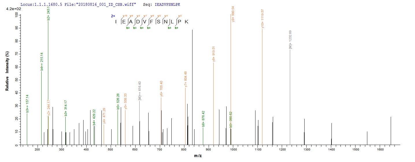 Based on the SEQUEST from database of E.coli host and target protein, the LC-MS/MS Analysis result of this product could indicate that this peptide derived from E.coli-expressed Homo sapiens (Human) FSHR.