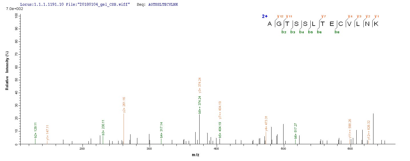 Based on the SEQUEST from database of E.coli host and target protein, the LC-MS/MS Analysis result of this product could indicate that this peptide derived from E.coli-expressed Homo sapiens (Human) IL15RA.