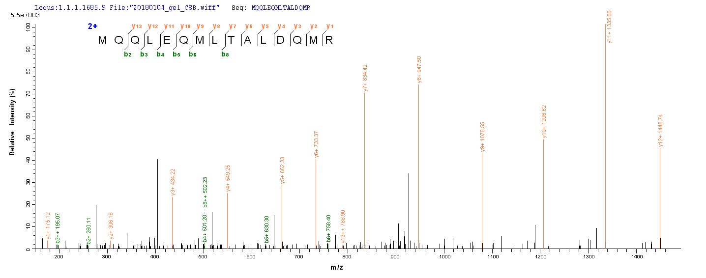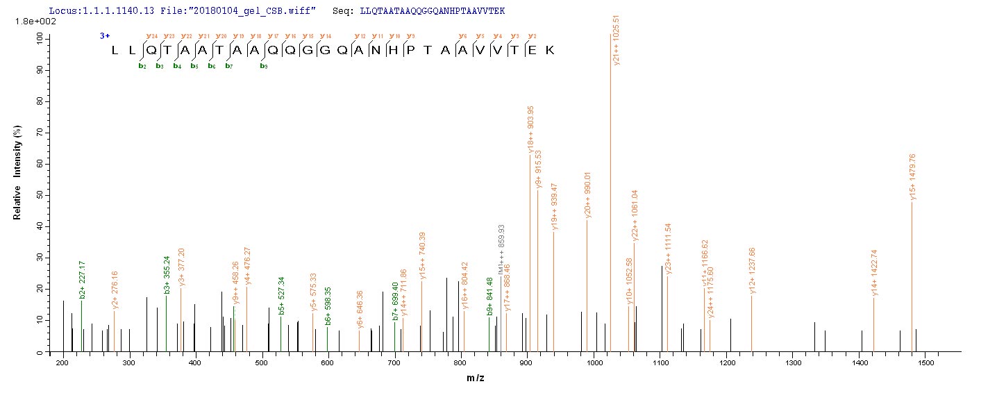 Based on the SEQUEST from database of E.coli host and target protein, the LC-MS/MS Analysis result of this product could indicate that this peptide derived from E.coli-expressed Homo sapiens (Human) STAT3.