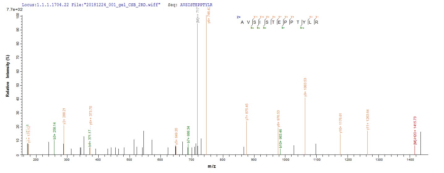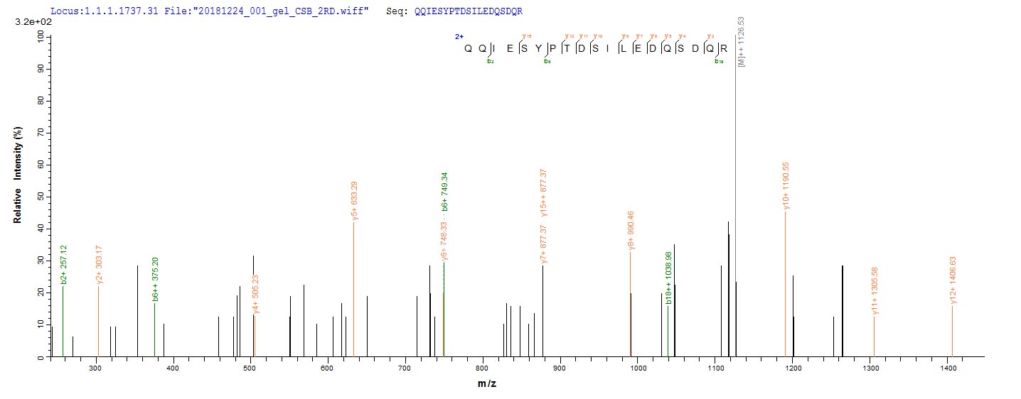 Based on the SEQUEST from database of Baculovirus host and target protein, the LC-MS/MS Analysis result of this product could indicate that this peptide derived from Baculovirus-expressed Homo sapiens (Human) SMARCB1.