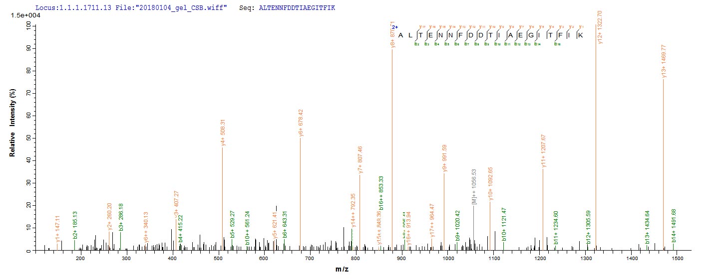 Based on the SEQUEST from database of E.coli host and target protein, the LC-MS/MS Analysis result of this product could indicate that this peptide derived from E.coli-expressed Homo sapiens (Human) TXNDC5.