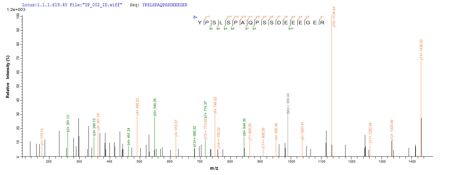Based on the SEQUEST from database of E.coli host and target protein, the LC-MS/MS Analysis result of this product could indicate that this peptide derived from E.coli-expressed Homo sapiens (Human) SPI1.