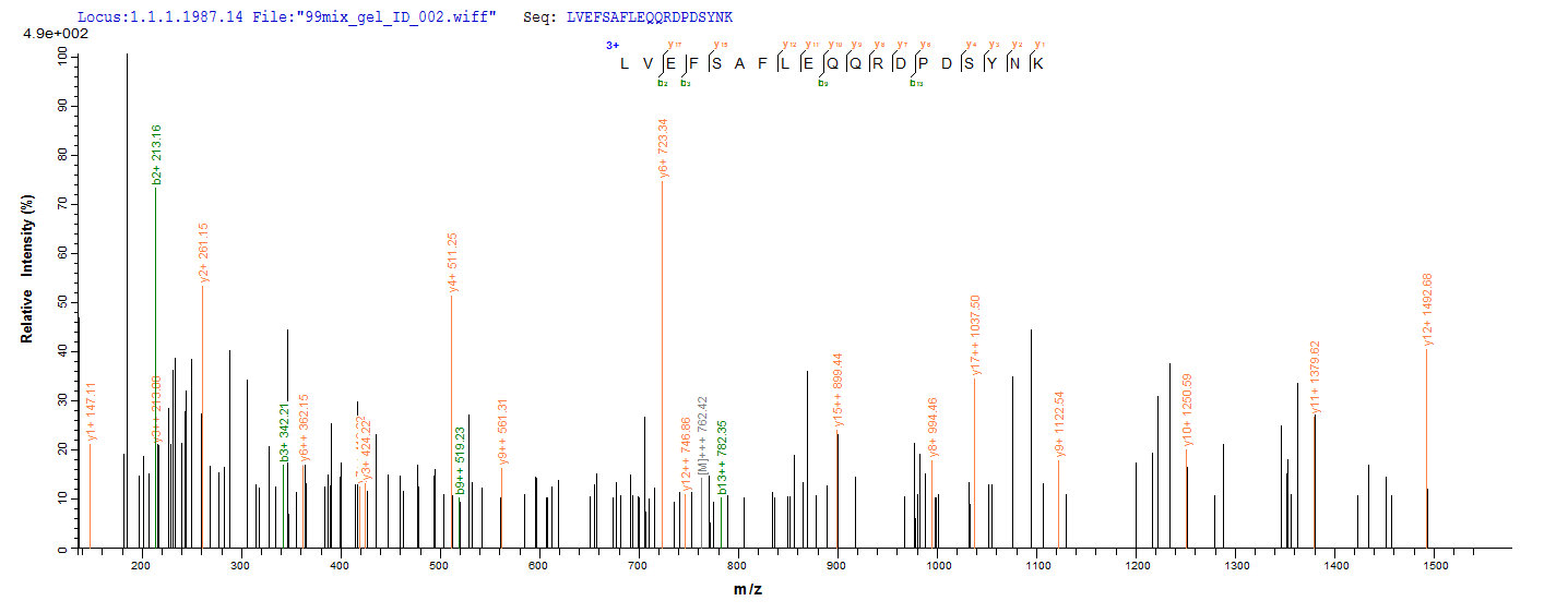 Based on the SEQUEST from database of Yeast host and target protein, the LC-MS/MS Analysis result of this product could indicate that this peptide derived from Yeast-expressed Homo sapiens (Human) TEAD1.