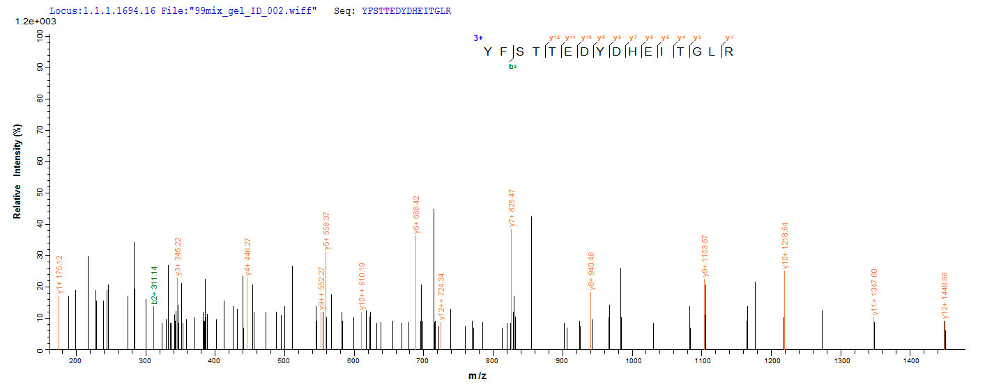 Based on the SEQUEST from database of Yeast host and target protein, the LC-MS/MS Analysis result of this product could indicate that this peptide derived from Yeast-expressed Homo sapiens (Human) ZG16B.
