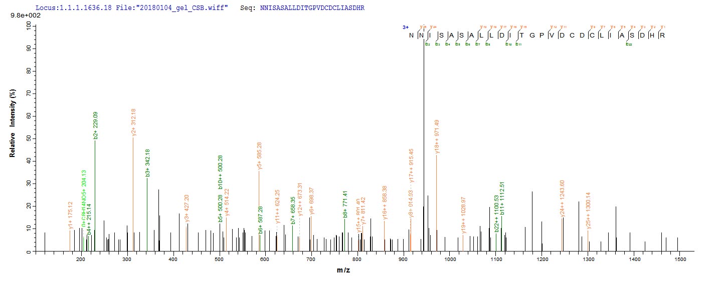 Based on the SEQUEST from database of E.coli host and target protein, the LC-MS/MS Analysis result of this product could indicate that this peptide derived from E.coli-expressed Methanothermobacter marburgensis (strain ATCC BAA-927 / DSM 2133 / JCM 14651 / NBRC 100331 / OCM 82 / Marburg) (Methanobacterium thermoautotrophicum) fno.