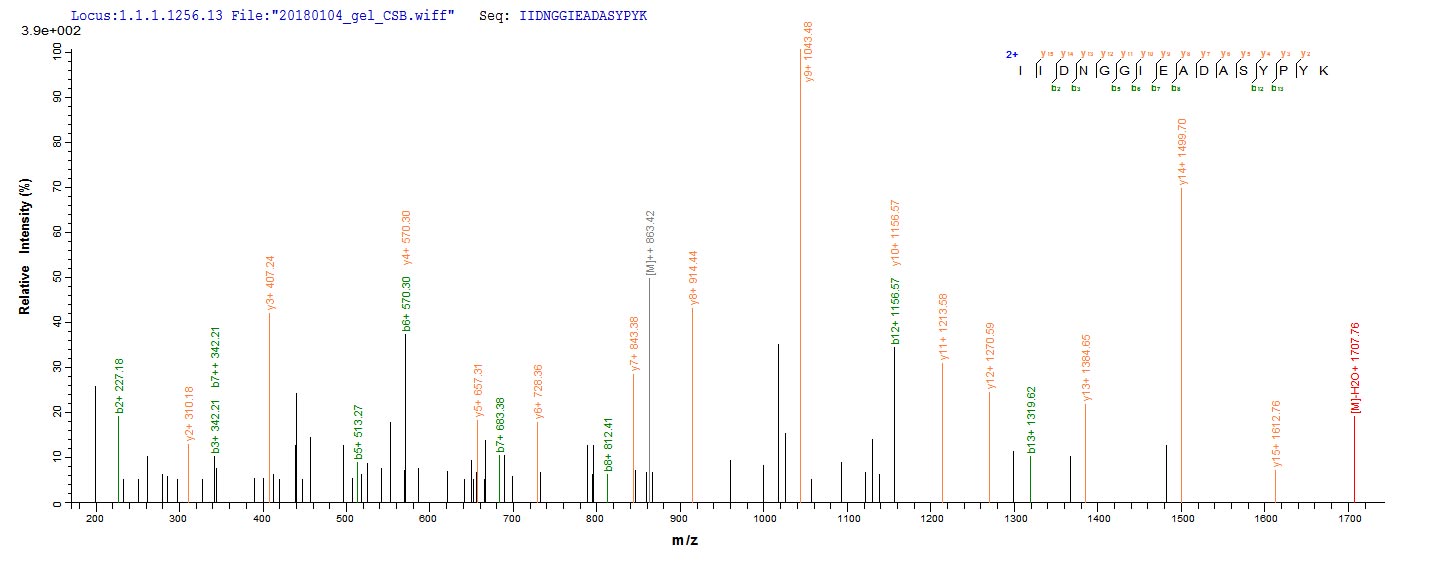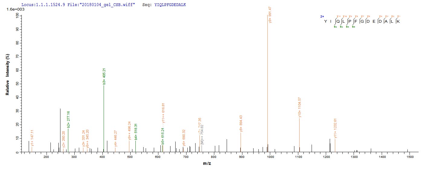 Based on the SEQUEST from database of E.coli host and target protein, the LC-MS/MS Analysis result of this product could indicate that this peptide derived from E.coli-expressed Mus musculus (Mouse) ctss.