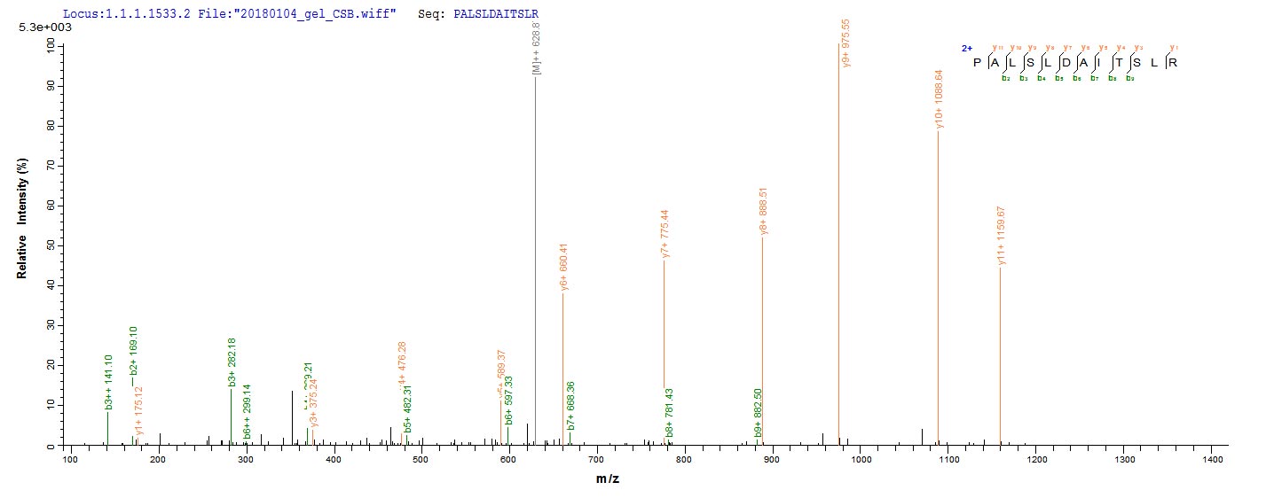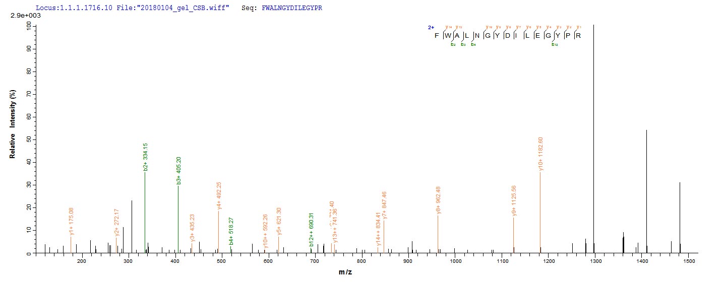 Based on the SEQUEST from database of E.coli host and target protein, the LC-MS/MS Analysis result of this product could indicate that this peptide derived from E.coli-expressed Mus musculus (Mouse) Mmp13.