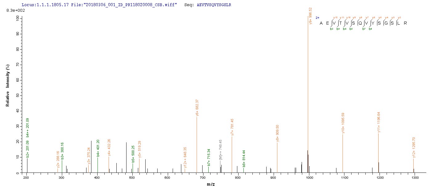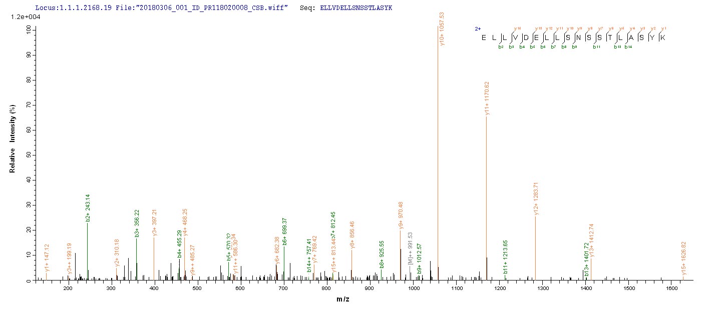 Based on the SEQUEST from database of Baculovirus host and target protein, the LC-MS/MS Analysis result of this product could indicate that this peptide derived from Baculovirus-expressed Mus musculus (Mouse) Tmprss6.