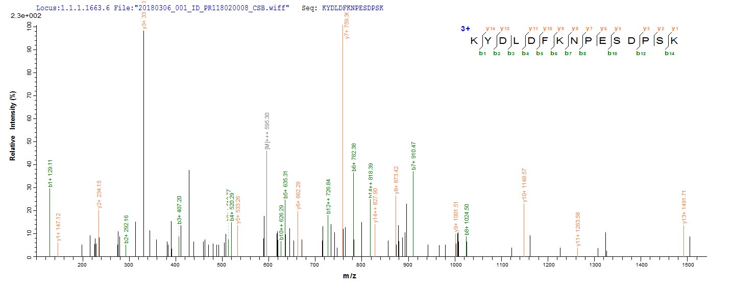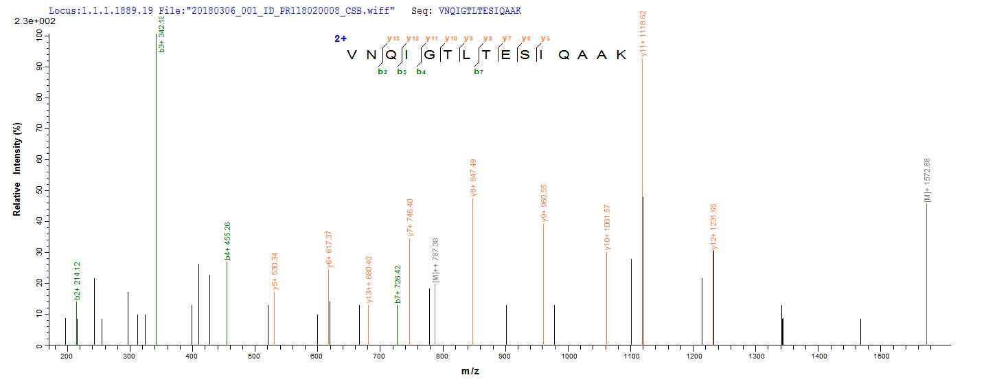 Based on the SEQUEST from database of E.coli host and target protein, the LC-MS/MS Analysis result of this product could indicate that this peptide derived from E.coli-expressed Neosartorya fumigata (strain ATCC MYA-4609 / Af293 / CBS 101355 / FGSC A1100) (Aspergillus fumigatus) enoA.