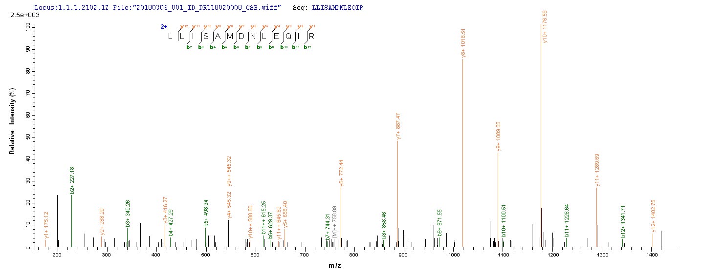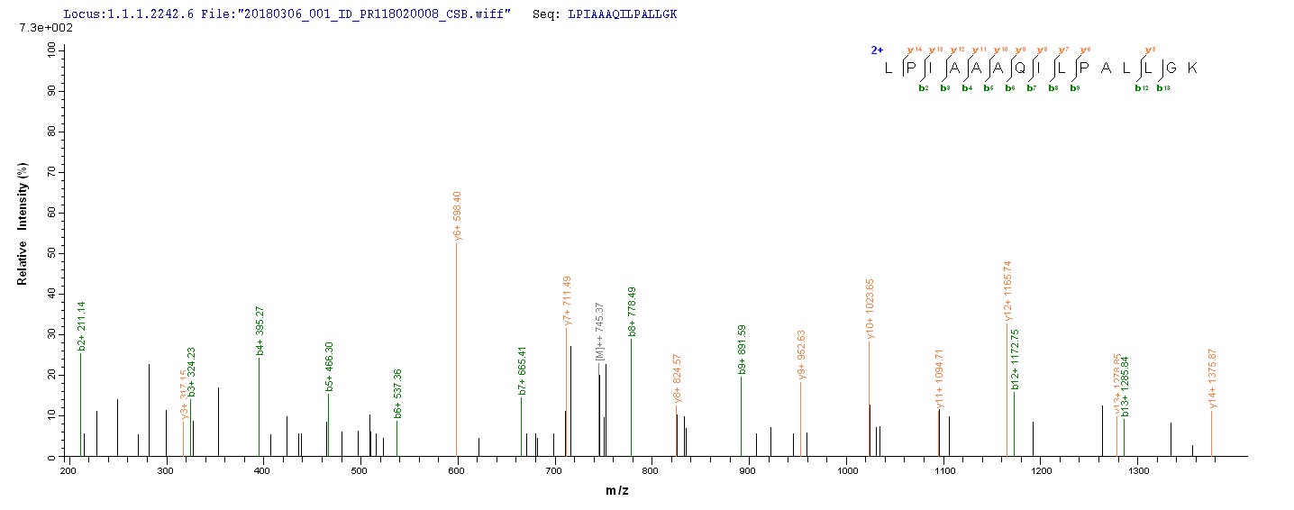 Based on the SEQUEST from database of Yeast host and target protein, the LC-MS/MS Analysis result of this product could indicate that this peptide derived from Yeast-expressed Sus scrofa (Pig) TCN1.
