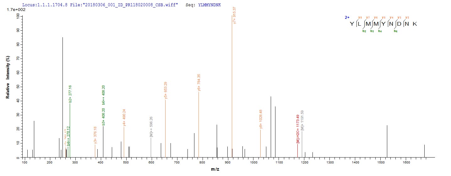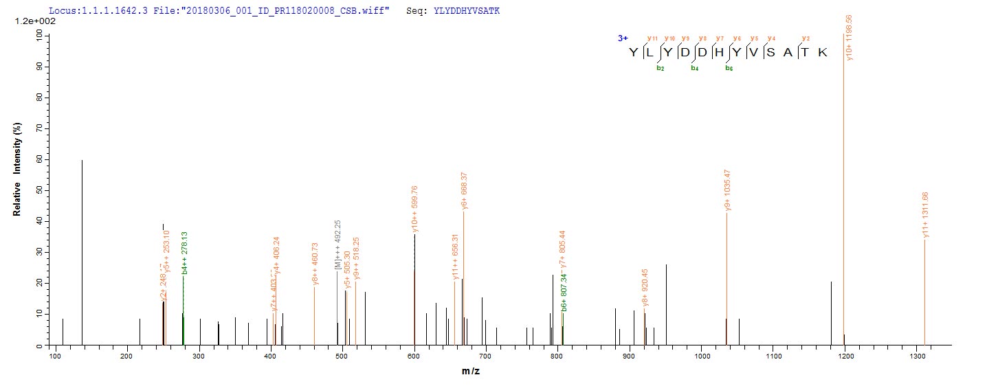Based on the SEQUEST from database of E.coli host and target protein, the LC-MS/MS Analysis result of this product could indicate that this peptide derived from E.coli-expressed Staphylococcus aureus entC3.